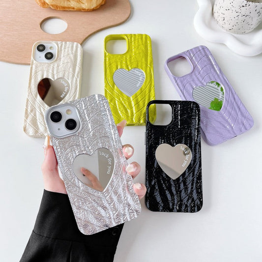 Pleated Love Heart Mirror Compatible with iPhone Case
