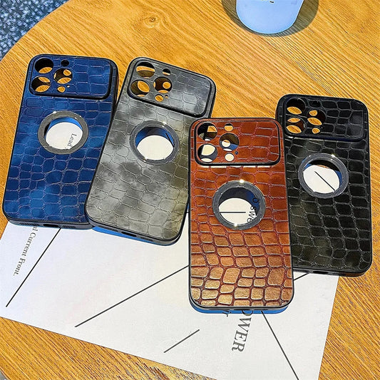 Retro Crocodile Pattern Leather Logo View iPhone Case