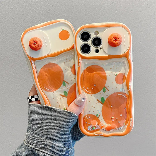 Cute Oranges Push Pull Camera Glitter Quicksand iPhone Case