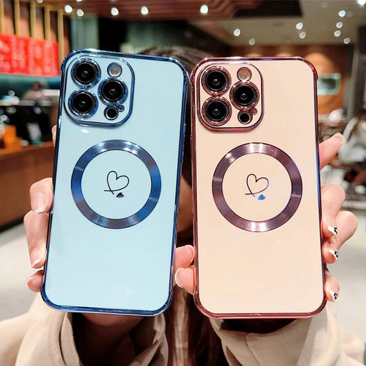 Love Heart for Magnetic Magsafe Wireless Charging Solid Color Compatible with iPhone Case