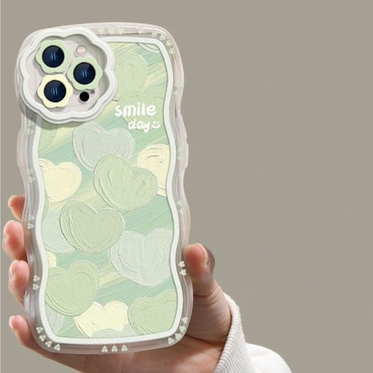 Green Love Heart Wave Frame Silicone Shockproof Compatible with iPhone Case