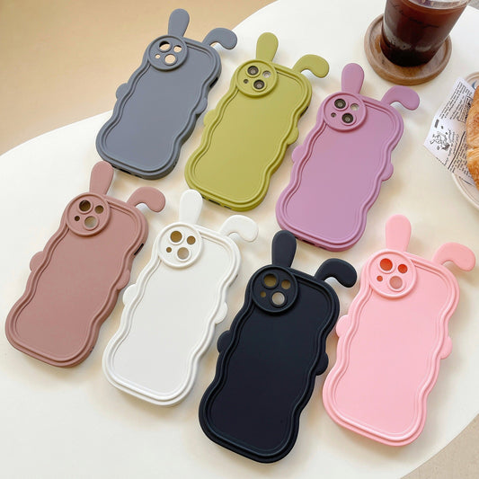 Curly Wavy Frame Cute Rabbit Ears Compatible with iPhone Case