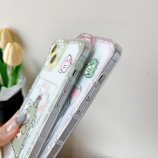 Cute Cartoon Dinosaur Couple Matching Card Holder Compatible with iPhone Case