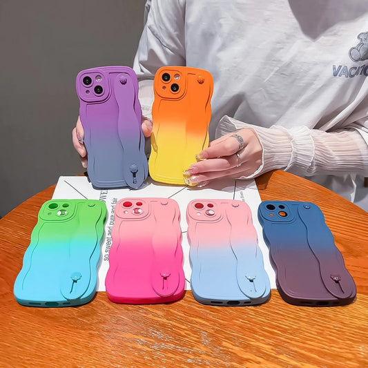 Gradient Color Wavy Wrist Strap Compatible with iPhone Case