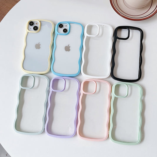 Solid Color Curly Wavy Frame Clear Soft Compatible with iPhone Case
