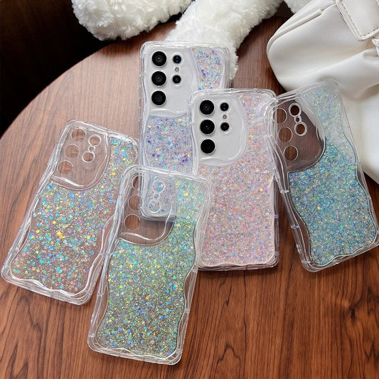 Bling Glitter Wavy Frame Cream Pattern Compatible with Samsung Case